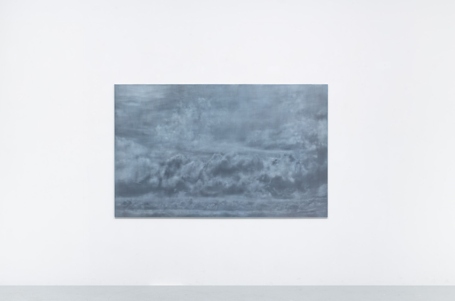 Although fixed in materially stable sheets of aluminium, the images dissolve into new forms as the light in which they are viewed changes, subtly evolving with every flicker of cloud between sun and earth. The historical cloudscapes, fixed many generations ago, are thus animated by those of today; the weather of once upon a time conflated with that of now. Here the past and the present overlap but fail to fit, pointing perhaps to a broader instability in our relationship with our world.