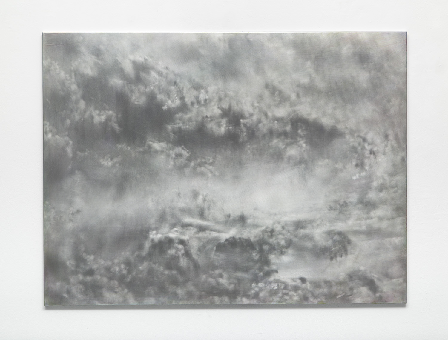 Although fixed in materially stable sheets of aluminium, the images dissolve into new forms as the light in which they are viewed changes, subtly evolving with every flicker of cloud between sun and earth. The historical cloudscapes, fixed many generations ago, are thus animated by those of today; the weather of once upon a time conflated with that of now. Here the past and the present overlap but fail to fit, pointing perhaps to a broader instability in our relationship with our world.